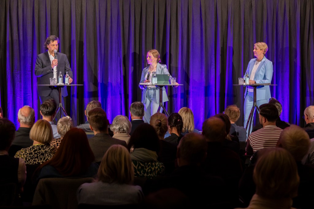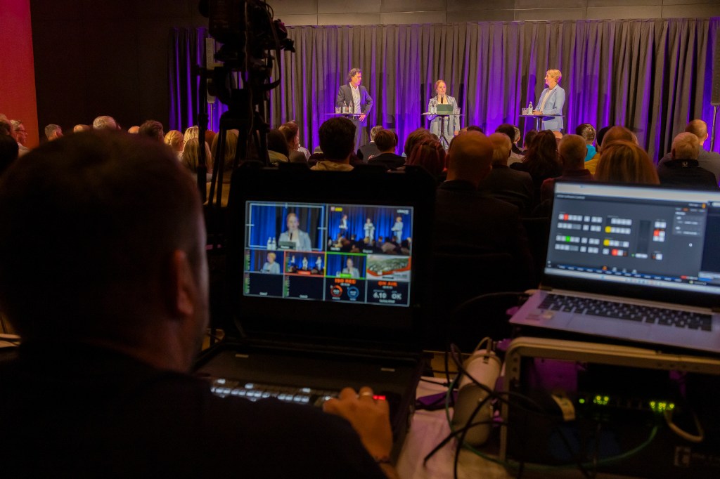 Wahldiskussion Feldkirch Diskussion mit den Bürgermeisterkandidaten zur Stichwahl im Montfortsaal mit Publikum.